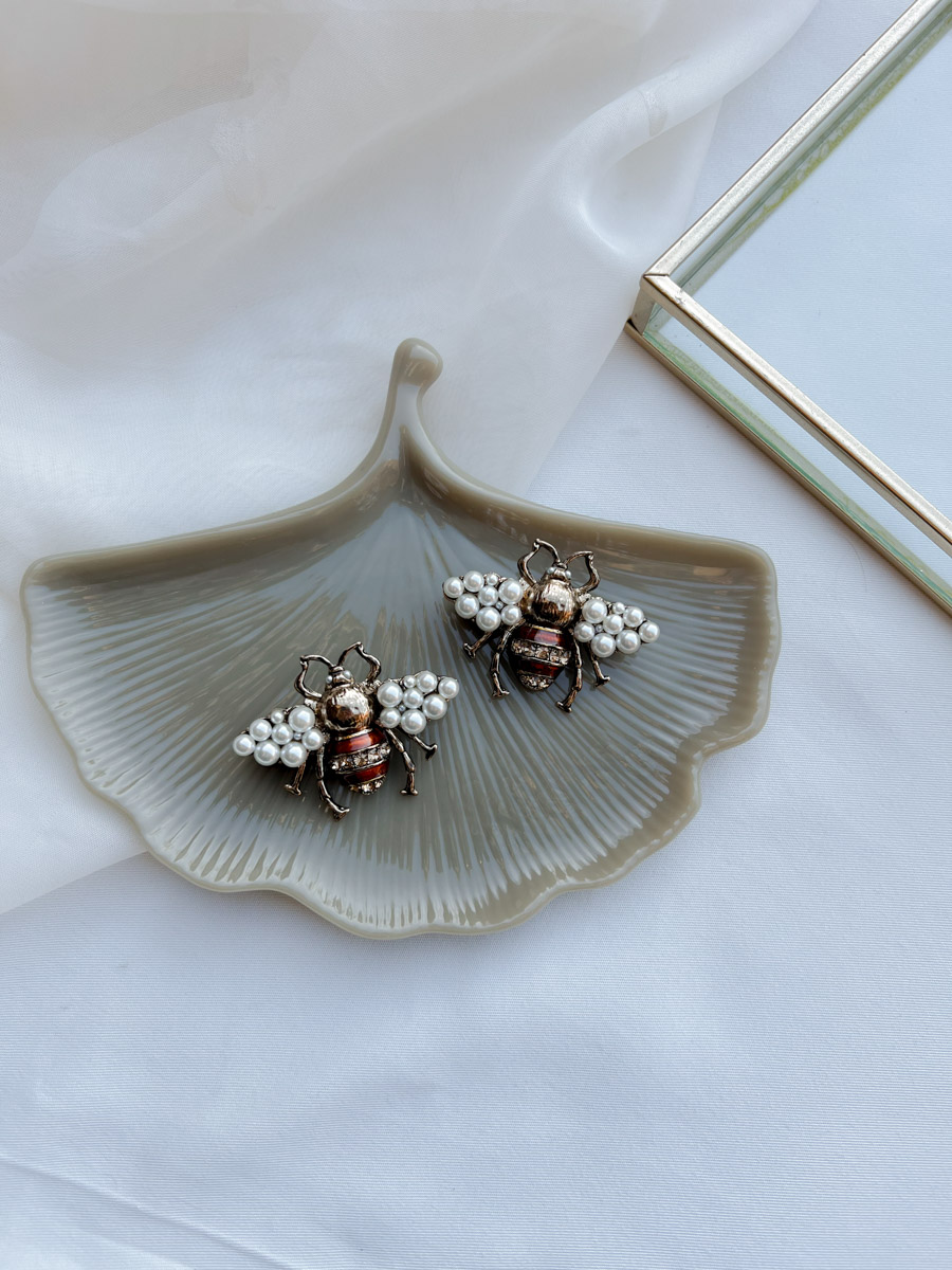 Deze opvallende bijenbroches zijn afgewerkt met glanzende parels en fijne kristallen details. De combinatie van goud, wit en rood geeft een chique uitstraling, perfect voor wie een statement wil maken. Draag ze op je jas of blouse als originele eyecatcher met karakter.