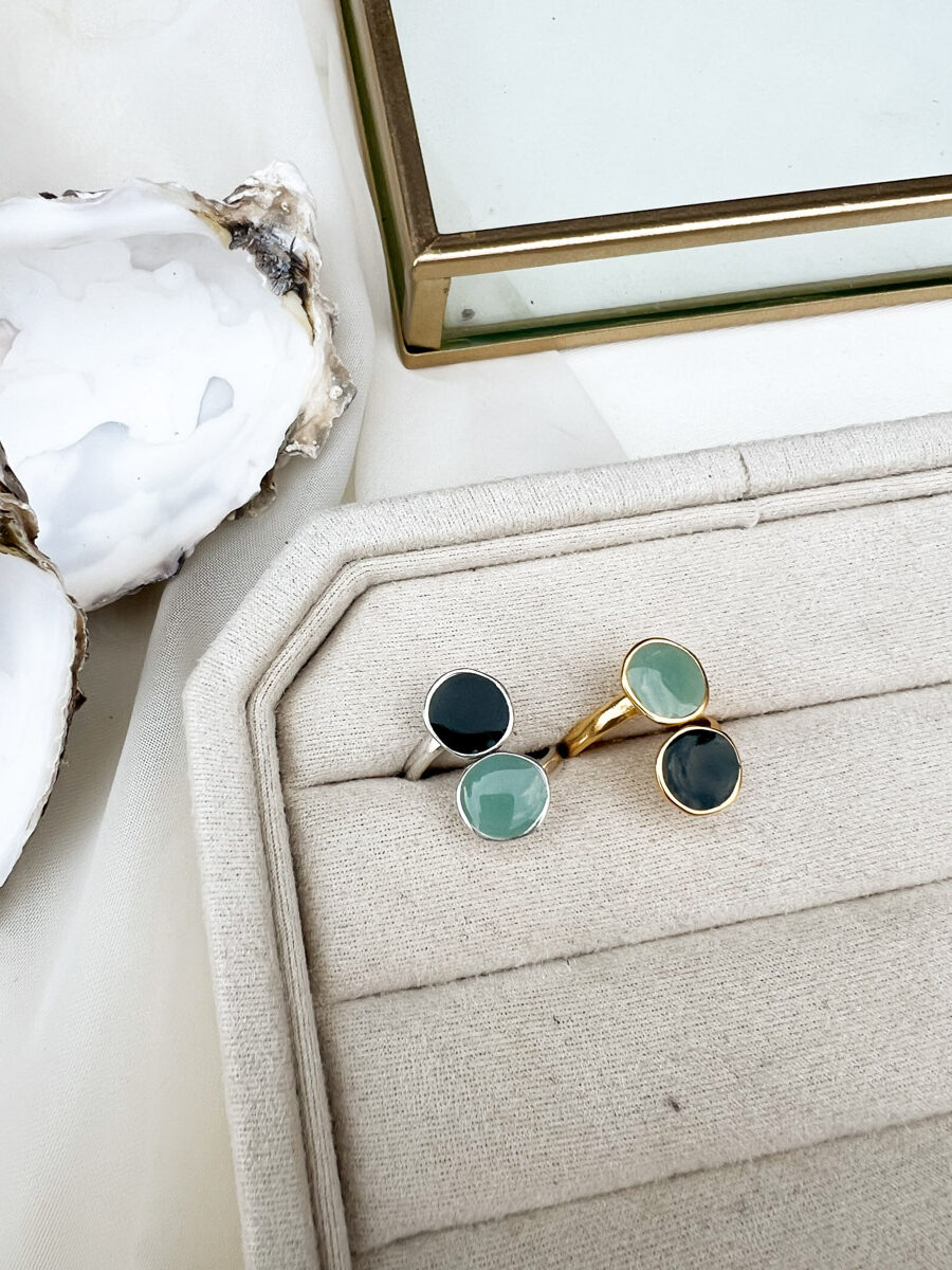 Deze handgemaakte blue lagoon ringen in groene tinten zijn uniek en een echte eyecatcher. beschikbaar in goud- en zilverkleurige afwerking.