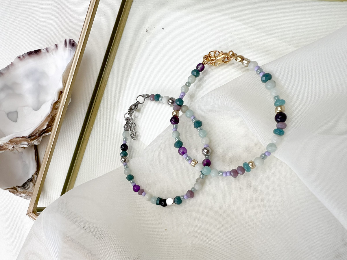 Deze kleurrijke armbanden zijn met de hand gemaakt van mooie kralen in verschillende tinten en afgewerkt met elegante details in zilver- en goudkleur. Perfect om solo te dragen of te combineren voor een speelse, unieke look.