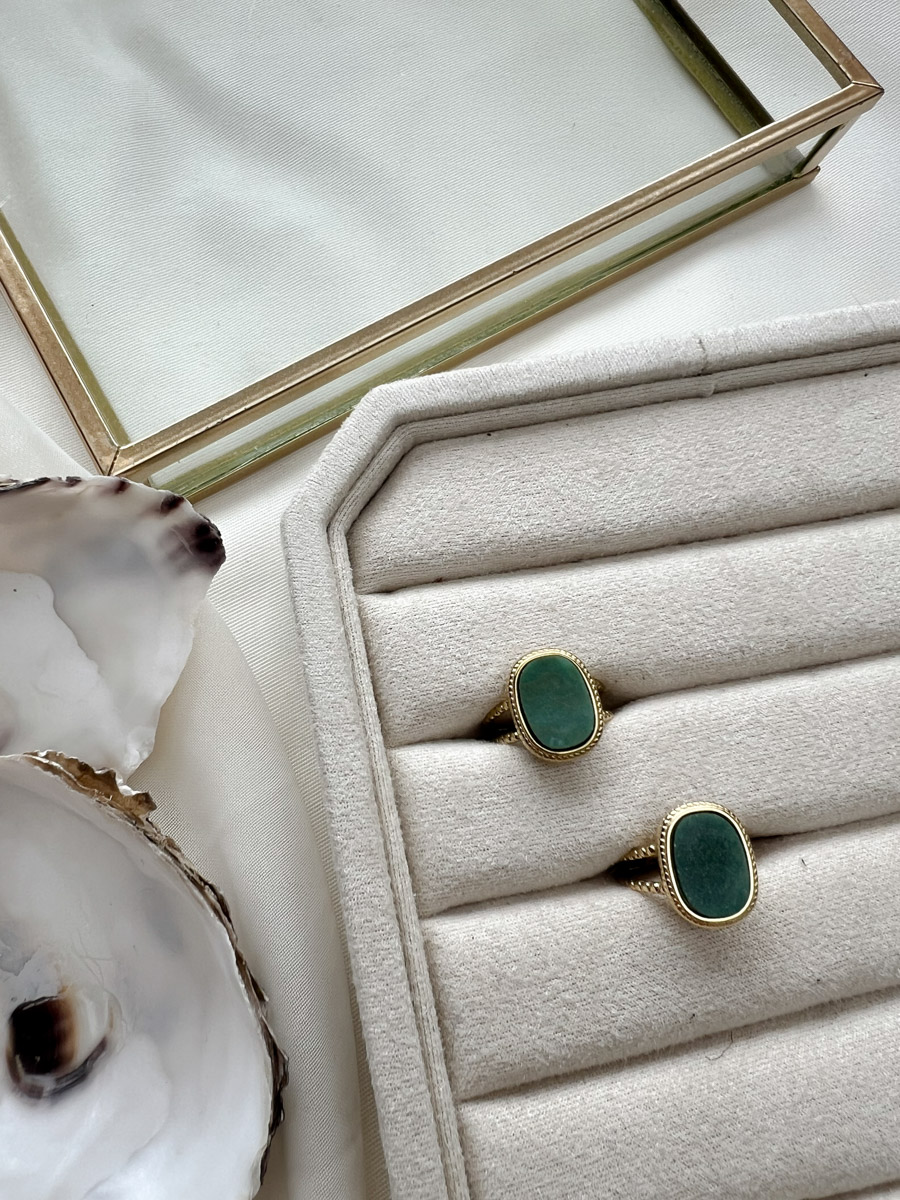 Deze verstelbare ring van roestvrijstaal combineert klassiek design met moderne elegantie. De groene ovaalvormige steen springt subtiel in het oog en straalt rust en verfijning uit. Het duurzame materiaal zorgt ervoor dat de ring lang mooi blijft, terwijl de verstelbare pasvorm comfort garandeert. Een veelzijdig accessoire dat perfect past bij elke stijl, van casual tot chic.