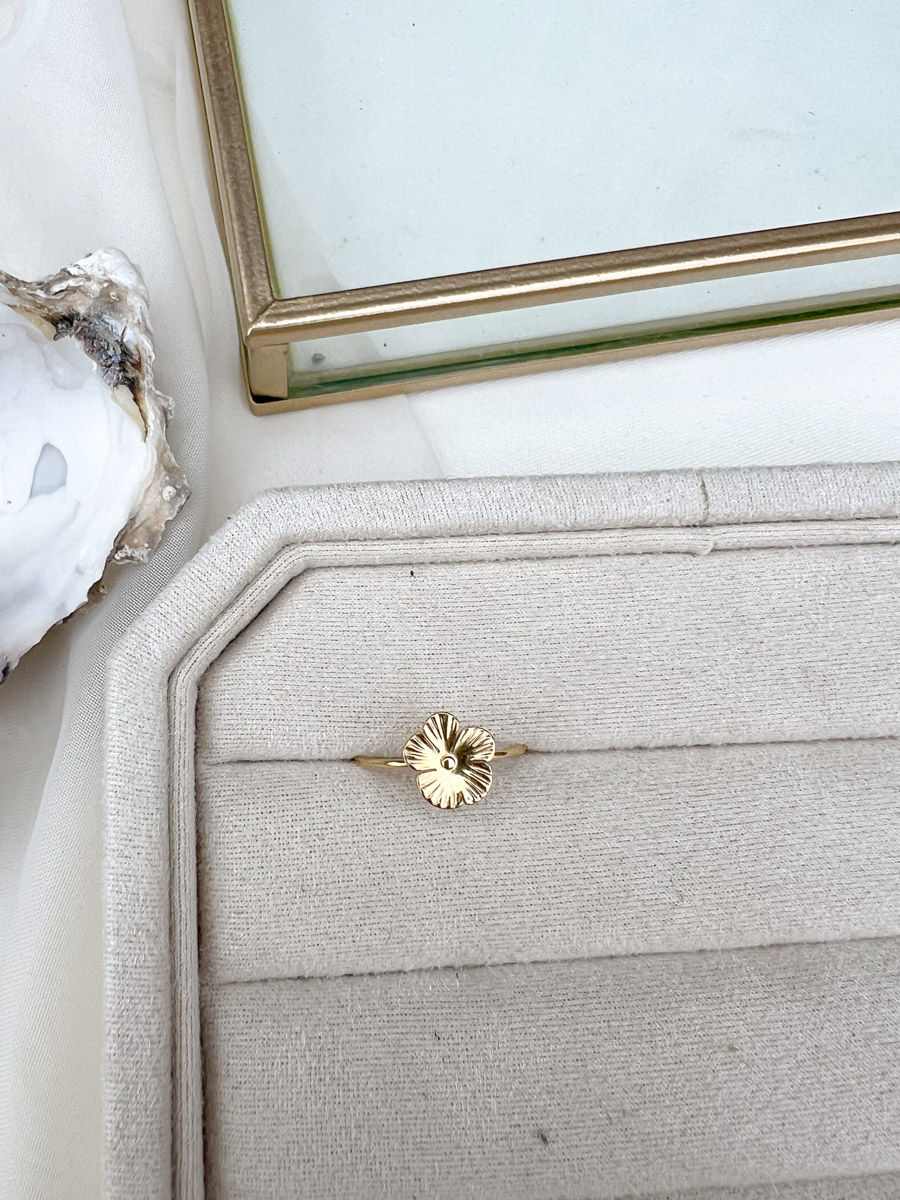 Deze goudkleurige verstelbare bloemring van roestvrijstaal straalt eenvoud en elegantie uit. Het ontwerp is voorzien van een verfijnd reliëf, waardoor de bloem een luxe en tijdloze uitstraling krijgt. De ring is perfect om dagelijks te dragen of te combineren met andere ringen voor een speelse look. Omdat hij gemaakt is van roestvrijstaal, is hij duurzaam, verkleurt hij niet en blijft hij jarenlang mooi. Een charmante keuze voor iedere sieradenliefhebber.