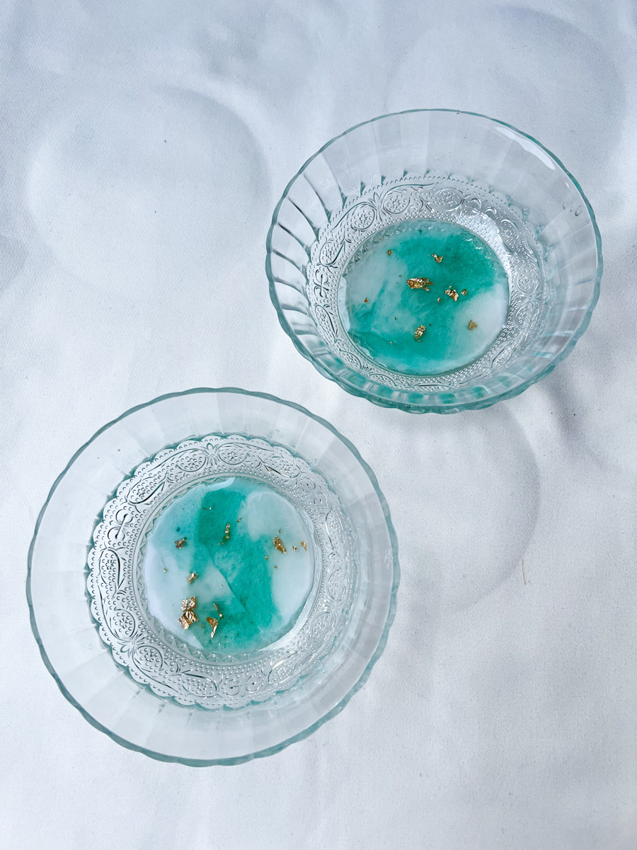Deze handgemaakte epoxy plateaus combineren een turquoise groene swirl met helder wit en een subtiele toevoeging van goudfolie. De vintage-geïnspireerde glasranden maken deze set perfect voor een boho of klassiek interieur. Ideaal voor het etaleren van sieraden of kleine schatten in een verfijnde setting.