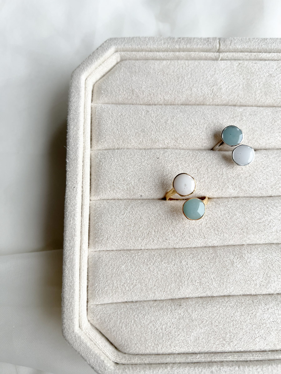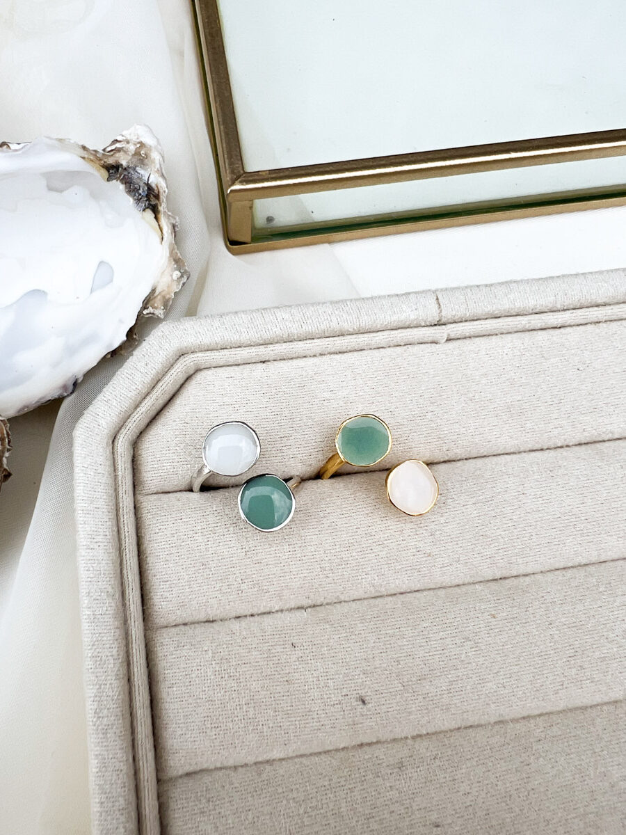 Deze Minty ring is een echte blikvanger die je eenvoudig combineert met zowel casual outfits als meer feestelijke looks. Een handgemaakt sieraad dat elegantie en eenvoud perfect in balans brengt.