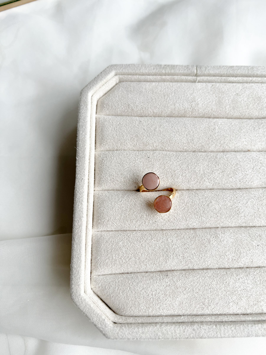 Deze elegante peachy ring in natuurlijke tinten is met de handgemaakt met epoxy, perfect voor wie van een warme en neutrale look houdt. Dankzij de verstelbare ring is hij comfortabel en passend voor elke vinger. Tijdloos en stijlvol in zijn eenvoud.