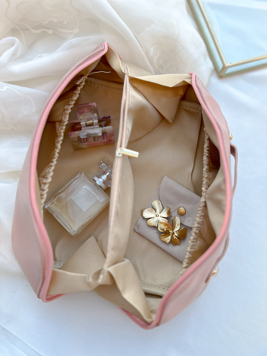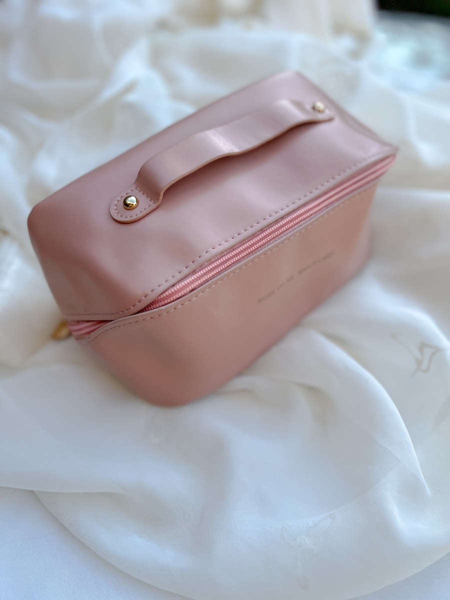 De zachte, vrouwelijke uitstraling in een subtiele blush tint maakt deze make-up tas niet alleen praktisch, maar ook een stijlvolle accessoire die gezien mag worden. Compact genoeg voor in je koffer of handtas, maar ruim genoeg om al je essentials mee te nemen tijdens een weekendje weg of een lange vakantie.