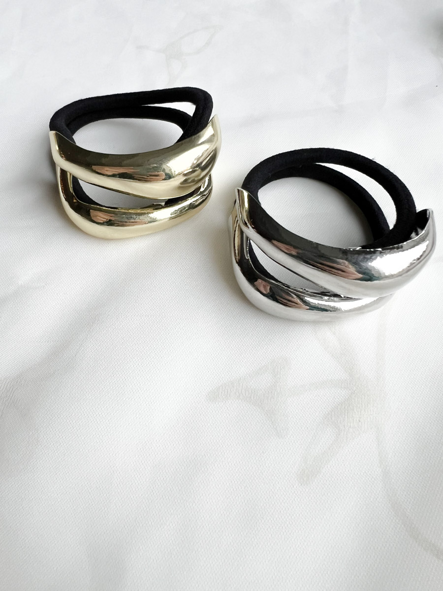 Deze moderne haarelastiek combineert kracht en elegantie in één accessoire. De Sparkle luna is uitgevoerd in een metallic zilveren of gouden look, en vormt een stijlvolle omlijsting voor elke paardenstaart. Perfect voor wie houdt van een minimalistische look met een luxueuze touch.