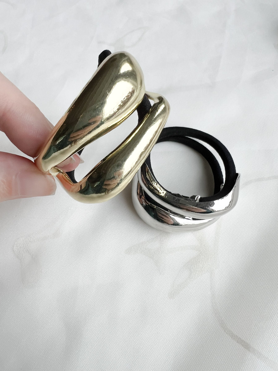Voor een moderne en minimalistische uitstraling is dit haarelastiek met strak epoxy plateau de perfecte keuze. Verkrijgbaar in zowel goudkleur als zilver, straalt dit accessoire een tijdloze elegantie uit met een subtiele twist. Het geometrische design geeft je kapsel een modieuze en gestructureerde touch, zonder te overdrijven. De elastiek is sterk en elastisch, ideaal voor dagelijks gebruik of als stijlvolle finishing touch bij een avondlook.