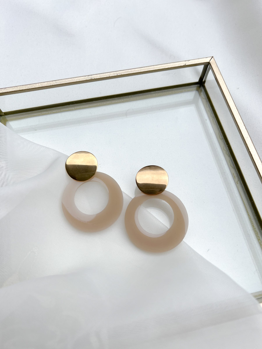 deze veloura handgemaakte oorbellen combineren nude-kleurige Resin Art met elegante ronde RVS studs. Een uniek, tijdloos accessoire voor elke gelegenheid.