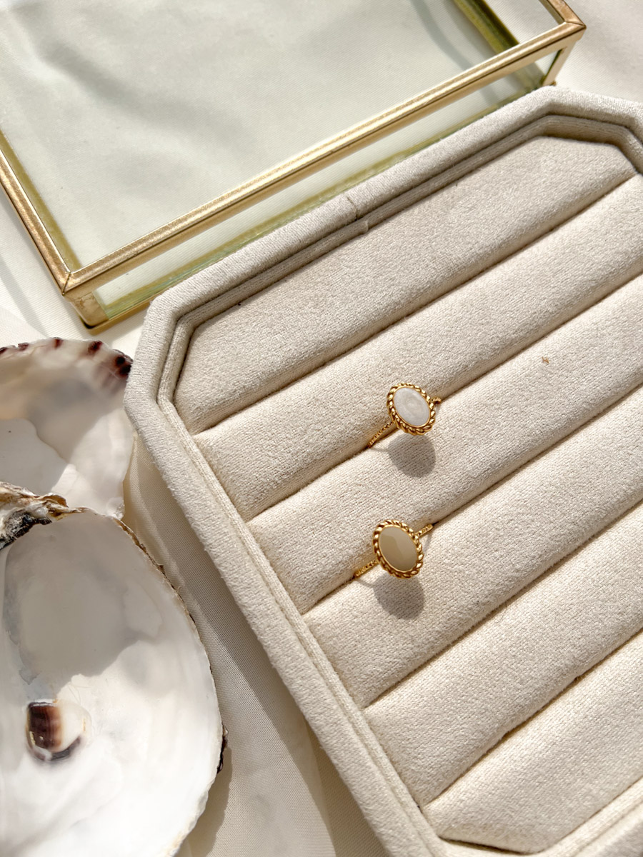 Deze elegante ring is een echte blikvanger in jouw sieradencollectie. Het ovale steentje wordt prachtig omlijst door een subtiel goudkleurig gedraaid randje, wat de ring een luxe en klassieke uitstraling geeft. Dankzij het tijdloze design is deze ring perfect te combineren met zowel casual outfits als chique avondlooks. Of je hem nu solo draagt of combineert met andere ringen, dit sieraad zorgt altijd voor een verfijnde finishing touch. Een veelzijdige ring die ideaal is om cadeau te doen of jezelf mee te verwennen.